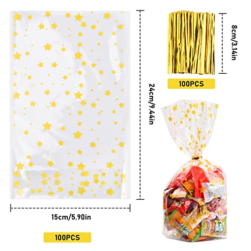 Xzeemo 100pcs Sacchetti di Cellophane Trasparenti 24x15cm, Sacchetti Trasparente OPP con 100 Lacci Metallici, Sacchetti Trasparenti per Confezioni,Sacchetti per Biscotti Caramelle Dolci Torte Cupcakes
