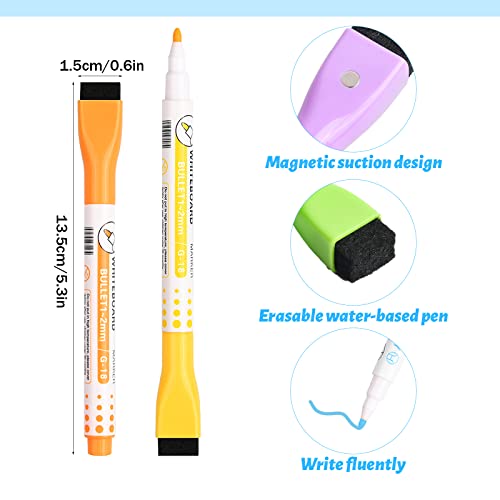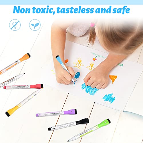 Xzeemo 8 Colori Assortiti Pennarelli Lavagna Bianca Cancellabile, Pennarelli per Lavagna Bianca Magnetica Cancellabili A Secco con Cancellino Incorporato per L'insegnante Scuola Casa Ufficio
