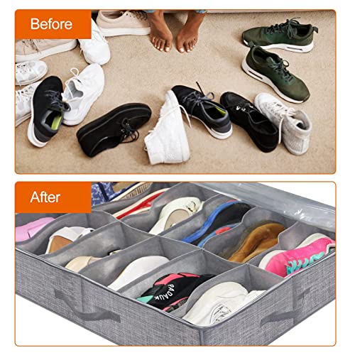 Xzhan Scarpiera sotto Il Letto | Scatola portascarpe sotto Il Letto con Finestra Trasparente e 2 Maniglie,Spazioso Contenitore per Scarpe per Armadio sotto Il Letto