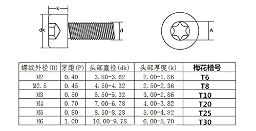 XZMALZYC Avvolgitrice Esagonale in Acciaio Inox Viti a Testa Torx M2 m2.5 m3 m4 m5 m6 Sei Viti a Testa di Sicurezza del Lobo (Size: M2x4 (100pcs))