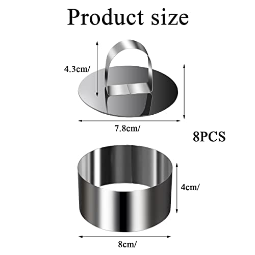 XZMCAT 8 Pezzi Mousse Anelli in Acciaio,Anelli Dessert,Acciaio Inossidabile Anello per Torte,con Coperchio,per Cottura in Casa di Quiche Mousse Dessert (Diametro 8 cm)