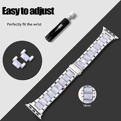 Xzmysxg Cinturino in Resina Metallica, Compatibile con Cinturino Apple Watch Donna/Uomo,Cinturini di Ricambio per iWatch Serie 8 7 6 5 4 3 2 1 SE,Argento(42mm/44mm/45mm/49mm)