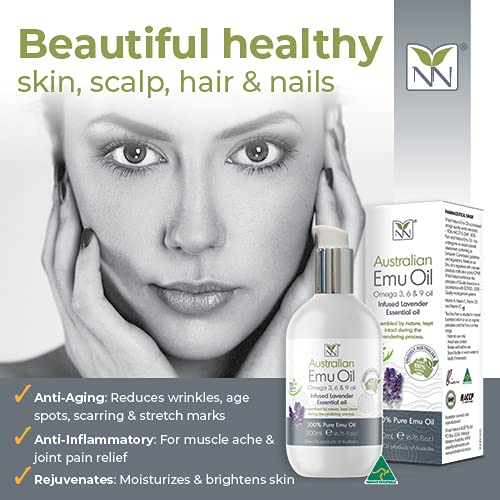 Y-Not Natural Olio di emu australiano ultra puro di lusso, olio di emu di grado ospedaliero 200 ml | Infuso con lavanda: la crema idratante definitiva per pelle, capelli