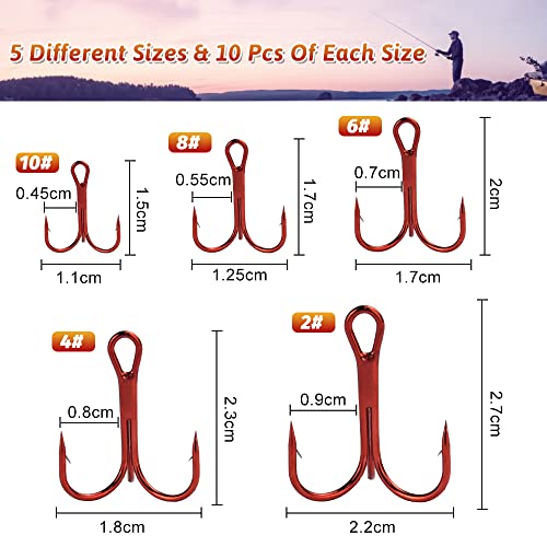 YAANBUNB 50 Pezzi Ami da Pesca con Occhiello Ami Tripli Acciaio Carbonio 2/4/6/8/10 Ganci Triplo Spinato Pesce Spinato Amo da Pesca Acciaio con Scatola Attrezzatura da Pesca per Acqua Dolce Salmastra