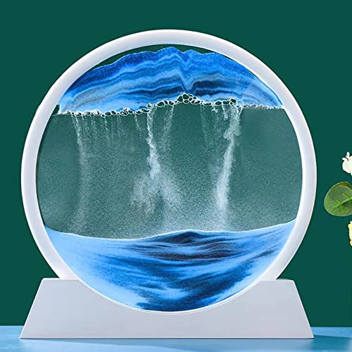 Yaasier Pittura a sabbia scorrevole,Immagini di sabbia 3D dinamiche per la rotazione,Arte di sabbia mobile in vetro rotondo telaio sabbia,Pittura a sabbia fluida 3D per adulti e bambini