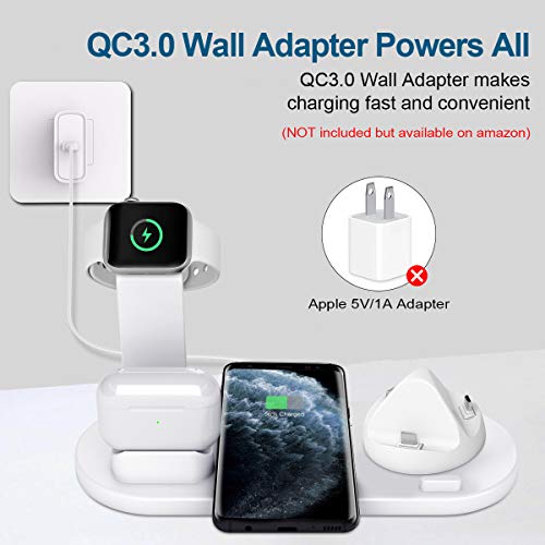 Yaature 6 in 1 Caricatore Wireless, Caricabatterie Senza Fili per iWatch 5/4/3/2/1 & Airpods Pro/2/1, Ricarica Rapida Wireless per iPhone 11/11 PRO/XS/XR/X/8, Samsung con Una Porta di Uscita USB