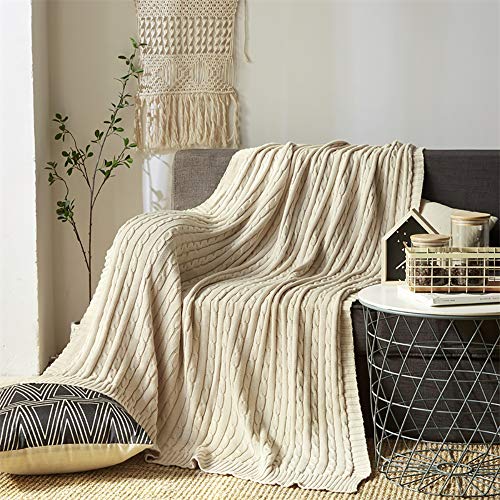 Yachee - Coperta in cotone lavorato a maglia, per divano, 180 x 200 cm, extra morbida, per letto, divano (crema, 180 x 200 cm)