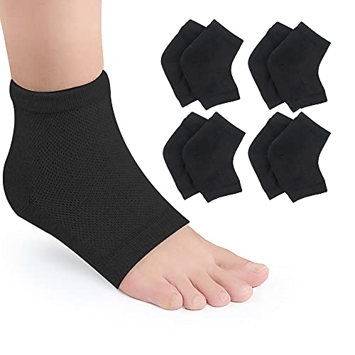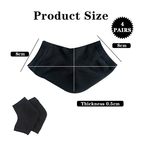Yaclonq 4 paia di calzini ventilati in gel idratante sul tallone, calzini aperti per la riparazione del tallone senza dita dei piedi per il trattamento della cura dei piedi (Nero)