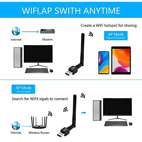 L'adattatore WiFi USB YACSEJAO supporta la funzione AP, è possibile utilizzare questo adattatore per creare un hot spot Wi-fi per offrire il segnale wifi per più dispositivi wifi.