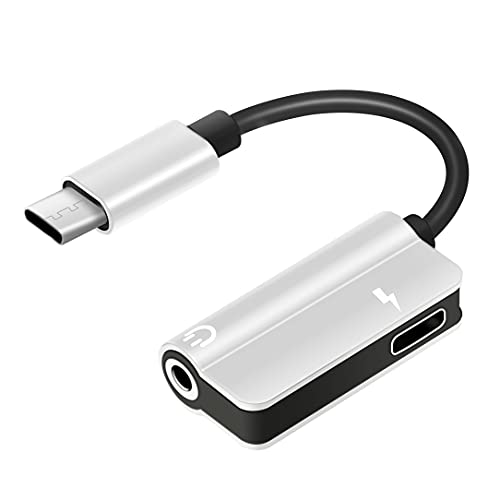 YACSEJAO Adattatore USB C per cuffie 2 in 1 da USB Type-C a Hi-Fi da 3,5 mm per la maggior parte degli smartphone, tablet e laptop (argento)