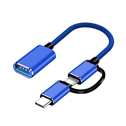 YACSEJAO - Cavo USB C 2 in 1, cavo micro USB a USB 3.0, ricarica rapida, cavo OTG per tutti i dispositivi Android, smartphone, tablet, MP4 e altro (blu)