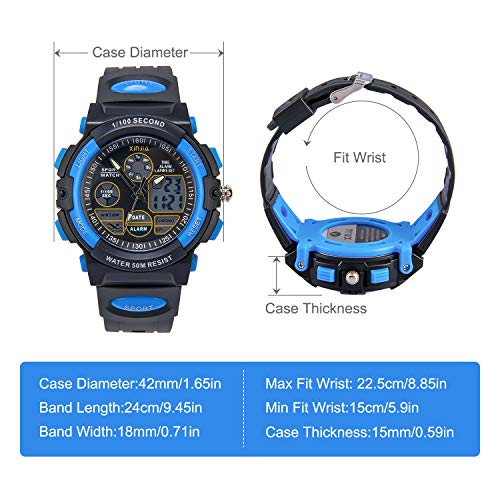 Yadelai Orologio Bambini,Orologi Digitali Bambini Orologi Sportivi da Esterno Impermeabili da 50M,Doppi Movimenti Digitali Analogici con Sveglia/Timer,Orologio Adolescenti Multifunzione (Blu 869)
