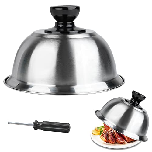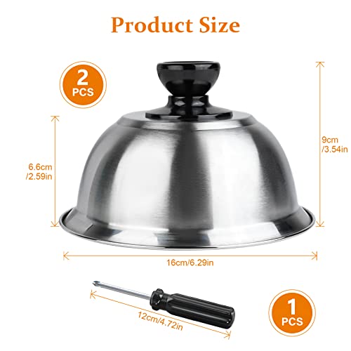 【Preserva il gusto del cibo】grazie al nostro cappuccio per hamburger, puoi creare facilmente polpette succose con formaggio uniformemente cotto e fuso. La cupola rotonda in metallo copre il cibo per ridurre al minimo gli schizzi d'olio e mantenere il calore intorno al cibo, bloccando l'umidità del cibo e preservando il sapore originale.