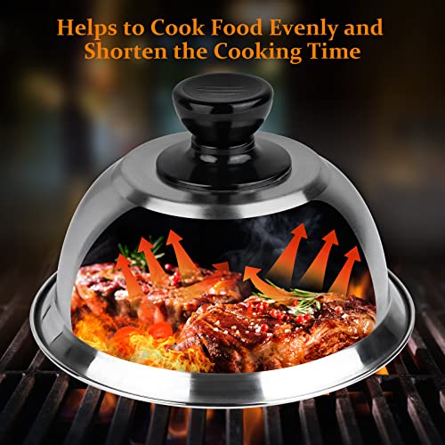 【Caldo uniformemente】cupola rotonda e dimensioni adeguate, perfette per trattenere il vapore durante la cottura, sciogliere il formaggio su hamburger/panini, cuocere a vapore le verdure o arrostire per una cottura uniforme. Crea un ambiente simile a un forno per risparmiare tempo e ottenere un sapore migliore. Niente più schizzi e cotture eccessiva.