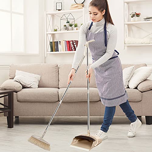 YADIMI Scopa e Paletta Spazzatrice Combinata Con 125 CM Maniglia Estensibile per la Pulizia Della Casa Verde Marrone