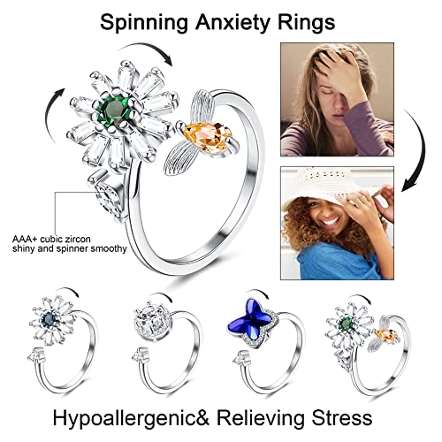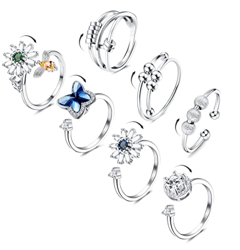 YADOCA 7Pcs Anelli per Donna Ansia Spinner Anello Regolabile Zirconia Fiore Farfalla Perline Fascia Anello Antistress Impilabile Meditazione Anelli per Donne Anello