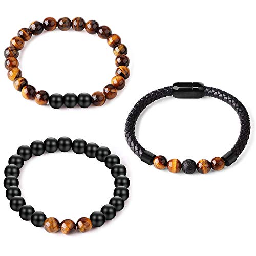 YADOCA 3 PCS 8MM Bracciale Perline per Uomini Donne Pietra dell'occhio della Tigre Lava Rock Pietra 7 Perline di Chakra Braccialetto Stringa Elastica Fibbia Magnetica