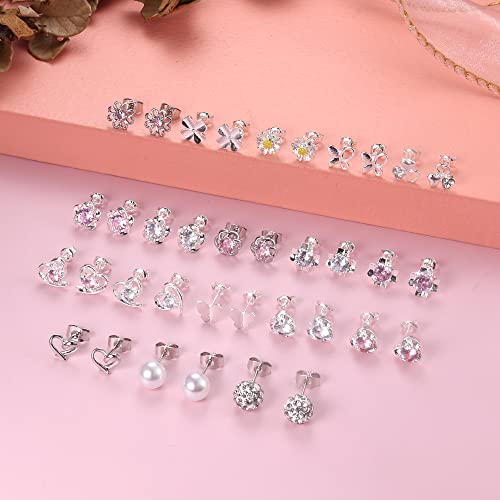 YADOCA 18 Paia di Orecchini in Argento Sterling 925 per Donne Ragazze Kinder Cubic Zirconia Perla Cristallo Cuore Rotondo Fiore Farfalla Piccola Cartilagine Orecchini Gioielli