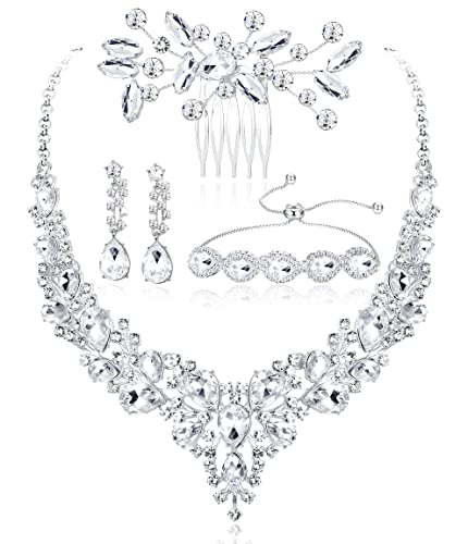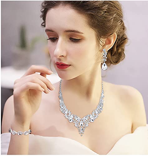 YADOCA Parure Gioielli Set per Donna Cristallo Sposa Collana Vintage Strass Orecchini Pendenti con Bracciale Copricapo Set Fidanzamento Nozze Sposa Damigella d'Onore Regalo Abito da Ballo Gioielli