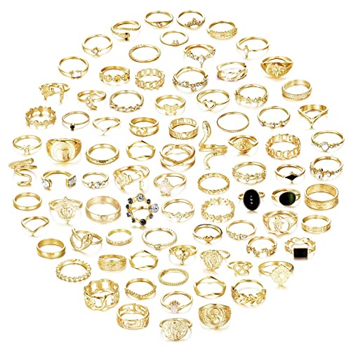 Set di anelli per nocche Riceverai 84 pezzi di anelli per nocche color oro in un set, che puoi indossare come normali anelli da donna o impilare come anelli per nocche, anelli midi, anelli per articolazioni, anelli per le dita...
