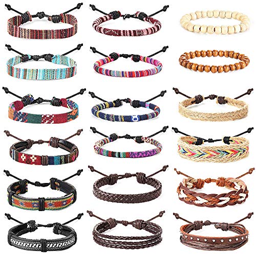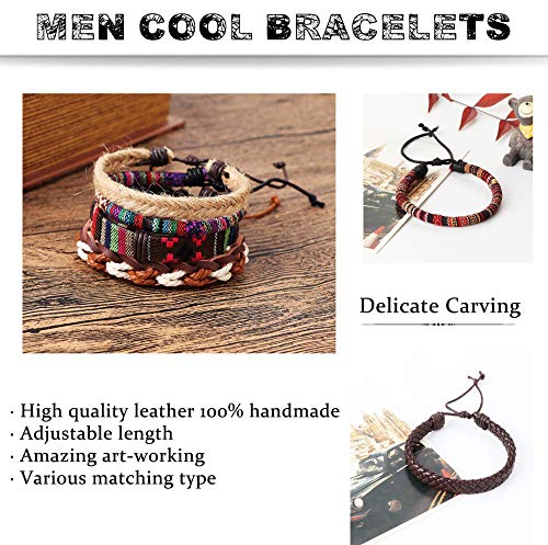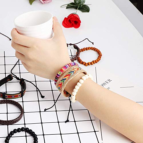 YADOCA 18 Pezzi Bracciali in Pelle Intrecciata per Uomo Donna Intrecciata Bracciale Avvolgente Perline in Legno Bracciali Tribali Etnici Regolabili