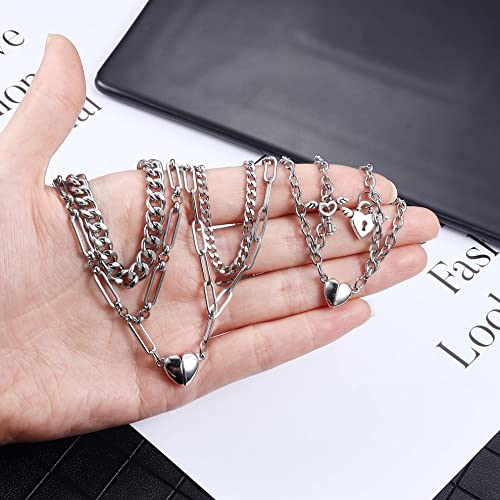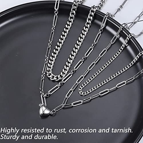 YADOCA 4 Pezzi Collana Bracciale Coppia Magnetica BFF Collana Bracciali Abbinati per Coppie Catena Cubana in Acciaio Inossidabile Collana Mezzo Cuore Bracciali Coppia per Fidanzato e Fidanzata