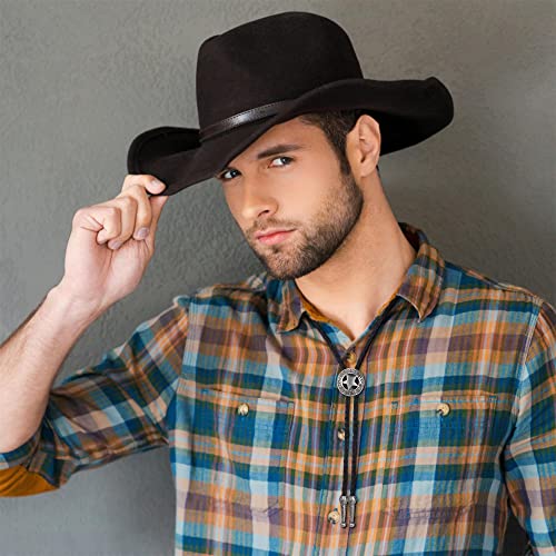 【ESIGN SQUISITO】 La nostra lunghezza della corda in pelle con cravatta in bolo occidentale è di 39,4 pollici, dimensioni dell'ornamento del pendente 1,2-2,0 pollici, con ciondolo regolabile e cordino in pelle collegato, puoi indossarlo come un tradizionale fermacravatta al collo per matrimoni o eventi aziendali, e può anche essere la tua collana di cravatta alla moda con il tuo vestito casual.
