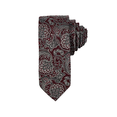Y&G YAEB0004 Rosso Scuro Grigio Paisley designer presenta jacquard tessuto cravatta di seta, eventualmente, per Sposi Skinny Tie