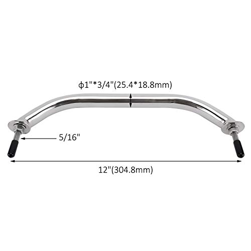 YaeMarine 12 pollici lucido acciaio inox Heavy Duty ovale barca Marine afferrare maniglia corrimano con flangia e perno (2)