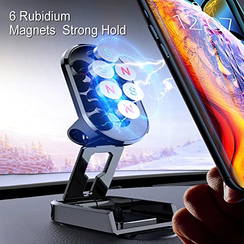 Yaepoip 2023 New Alloy Folding Magnetic Car Phone Holder, Magnetic Car Phone Holder Mount Rotatable for iPhone 14 13 Samsung S22 S21 (Black)