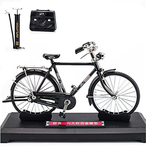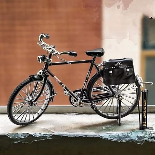 Yaepoip 51 PCS DIY Retro Bicycle Model Ornament for Kids, 1:10 Simulation Mini Bicycle Model Scale Kit with Inflator and Briefcase, Finger Bike Models Toys (with Briefcase Pump Black)