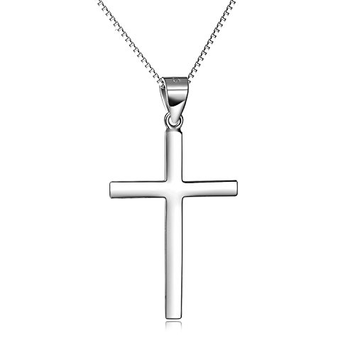 YAFEINI Collana in argento sterling con croce cristiana semplice, ad alta lucentezza, placcatura color oro bianco, gioielli per ragazze e ragazzi, 46 cm, Argento sterling, senza pietra