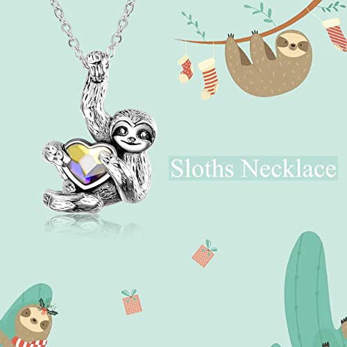 Yafeini - Collana in argento Sterling a forma di cuore con bradipo di cristallo, per donne e uomini