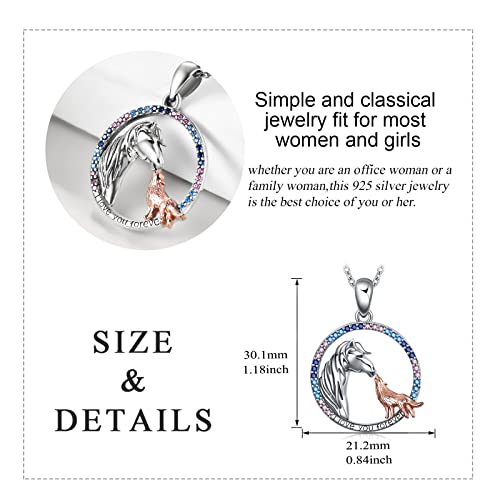 YAFEINI Collana di Cavalli Collana di Ciondoli di Lupo Collana di Gioielli in Argento Sterling 925 per Donne Ragazze Amante del Lupo Amante dei Cavalli