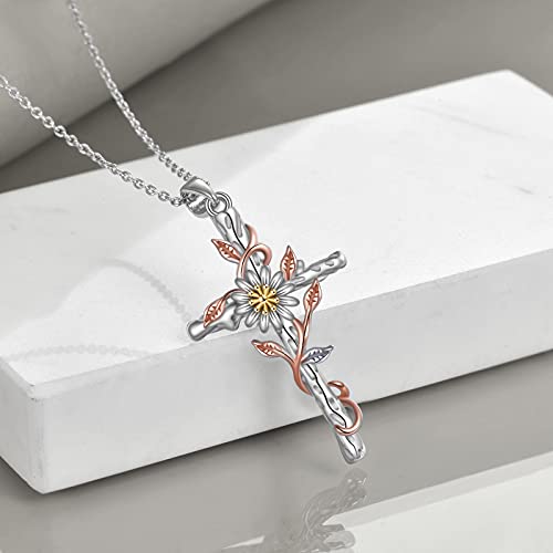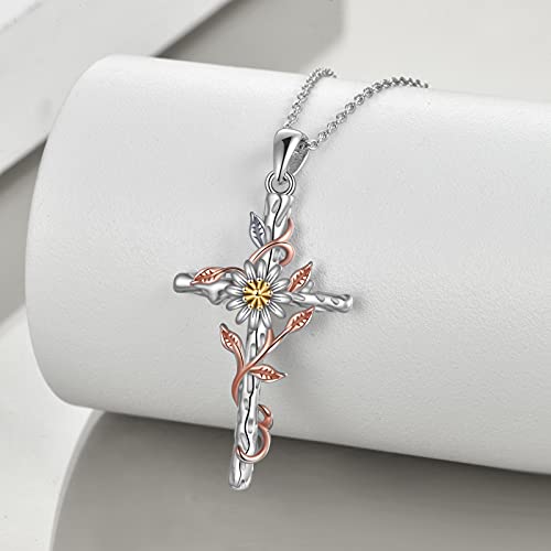 YAFEINI Collana con Croce in Argento Sterling 925 con Ciondolo Croce Margherita Collana con Fiore Margherita Gioielli da Regalo per Donna Mamma Ragazza