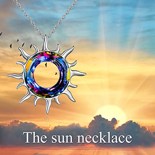 YAFEINI Collana da donna con ciondolo a forma di sole, in argento Sterling, con cristalli, idea regalo per donne e ragazze, Argento sterling