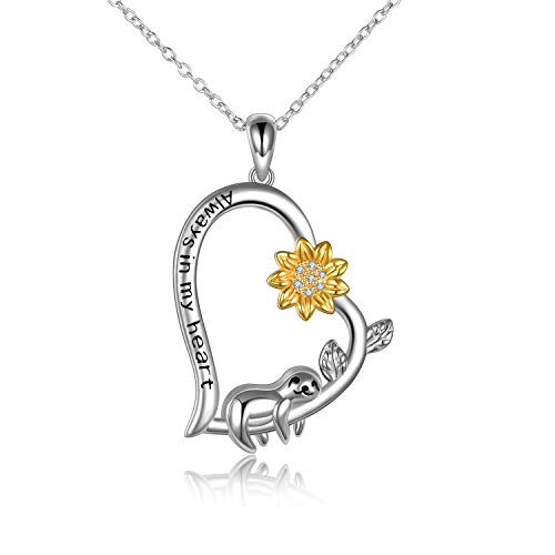 ❤【Confezione regalo】 Regalo di girasole - Simpatici regali di bradipo. Combina cuore con girasole e bradipo, la collana girasole è elegante e unica. Il regalo di girasole da donna viene fornito con la scatola regalo con ciondolo, perfetta per compleanno, Ringraziamento, congratulazioni, regalo di anniversario per donne, fidanzata, migliore amica, madre, moglie, amante, nonna, mamma, ecc.