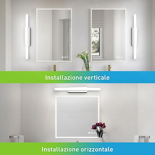 Luce da Specchio Bagno LED con Luminosità Eccellente: Questa lampada da specchio da 9W / 40CM offre una luminosità eccellente per il tuo bagno. La temperatura di colore di 6000K produce una luce fredda che crea un'atmosfera intima. Nota: La lampada non dispone di un interruttore separato ed è controllata da un interruttore comune.