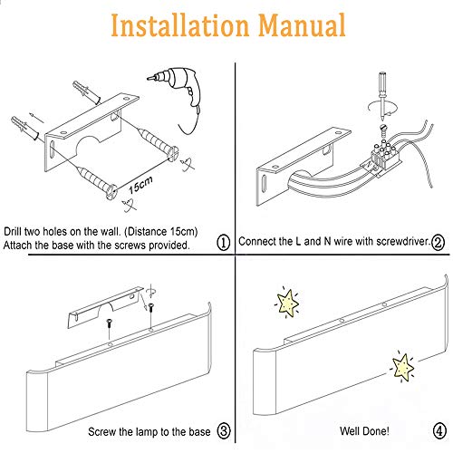 Tre Fasi per Installare Questa Luce Muro: 1.Fissare la piastra di montaggio 2.Collegare i due cavi lunghi 3.Stringere le viti con il corpo della lampada attaccato alla piastra, fatto.