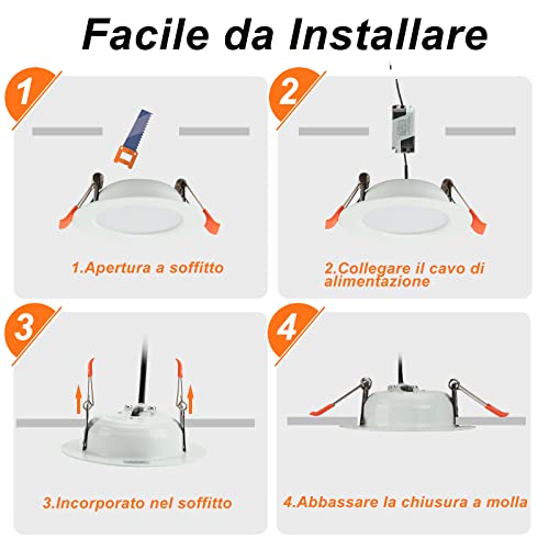 Yafido 10x Faretti Led 5W è equivalente alla lampada alogena 40W 500 Lumen Luce bianco caldo 3000K Faretti Led da Incasso per Cartongesso foro incasso Ø65-82mm