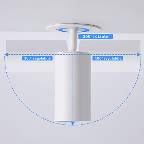 Yafido 2 Pezzi LED Faretti da soffitto Può essere verticale di 90 ° LED lampada a soffitto GU10 illuminazione da incasso a soffitto led girevole bianco e ruotato di 360 °, senza lampadine