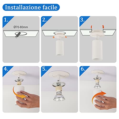 【Punto del soffitto del design moderno】Punto del soffitto a LED La luce del tetto può essere ruotata a inclinazione a 360 ° e 90 °. Ruota semplicemente la testa della lampada nella direzione in cui vuoi regolarlo all'angolo e all'atmosfera desiderata. La lampada da soffitto può essere installata solo a soffitto, il foro deve essere aperto, intervallo di fori: 70-80 mm.