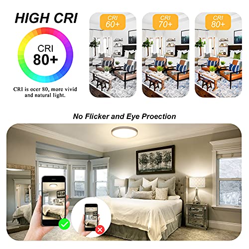【Design ultrasottile】 Lo spessore della plafoniera a LED piatta è di soli 2,5 cm. Lo stile di design elegante e semplice è perfettamente integrato nel soffitto ed è adatto a vari tipi di decorazione d'interni. Un altro design speciale è il bagliore del bordo, che crea un piacevole effetto di controluce. Piacevole alla vista.