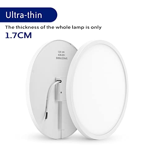 【Ultra sottile】Plafoniera led soffitto dimensione è Ø23*1.7CM e questa altezza è di soli 17mm, 24W led plafoniera, I chip LED di alta qualità forniscono una grande quantità di luce uniforme e non tremolante fino a 2160LM