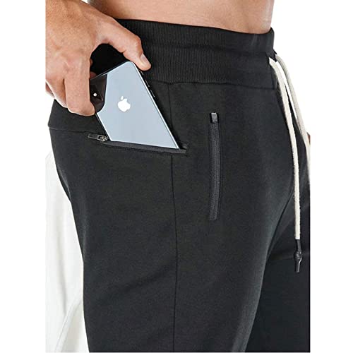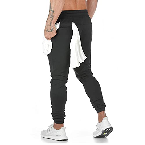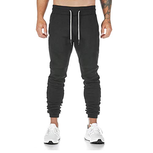 Yageshark - Pantaloni da jogging da uomo, pantaloni da tuta per allenamento, in cotone, alla moda, elasticizzati, pantaloni sportivi casual con elastico in vita, Nero, M