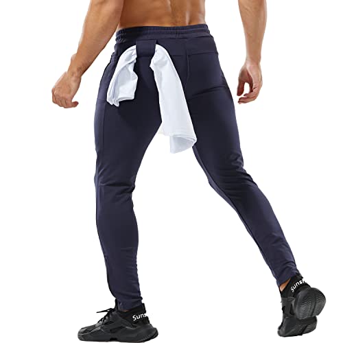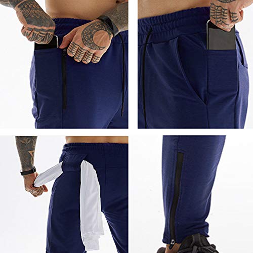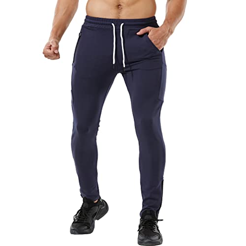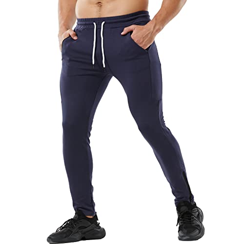 Yageshark Pantaloni da Jogging Uomo Cotone Moda Training Pantaloni da Tuta Taglia Elastica Casual Activewear Pantaloni, Marina, L