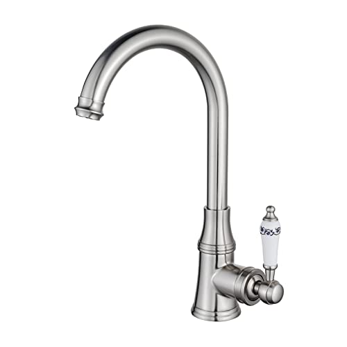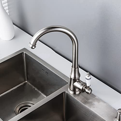 Materiale di alta qualità: il rubinetto da cucina opaco in ottone robusto, superficie in nichel spazzolato opaco, grazie allo spessore multiplo dello strato galvanico, eccellente resistenza all'ossidazione e all'abrasione, mantiene la luce come nuova.