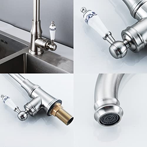 YAGJIA Rubinetto da cucina opaco spazzolato, rubinetto da cucina ad alta pressione girevole a 360°, miscelatore per lavello in ottone stile vintage