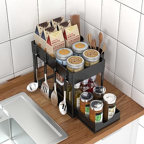 Yagosodee Organizer Cucina,Scaffale Estraibile per Lavello,Rganizer sottolavello cucina a 2 Livelli,Portaoggetti Sottolavello con 2 Tazza Appesa e 4 Ganci,Per Mobiletto da Cucina,Bagno,Cucina,Nero