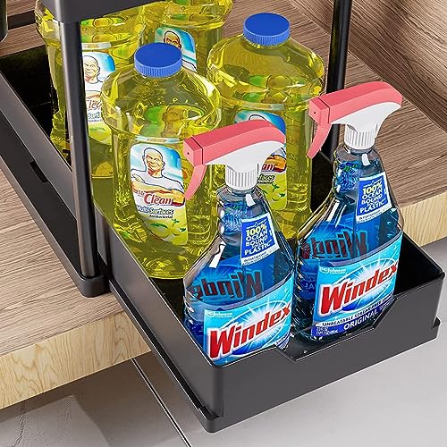 Cassetto estraibile sotto il lavandino: il cassetto inferiore dell'organizer facilita l'accesso a aree limitate e rende il meglio di piccoli spazi. Perfetto per cucine, bagni, armadi, dispense, uffici, lavanderie, camere da letto, soggiorni e molto altro ancora. Grande organizzatore sotto il lavello, portaspezie sul bancone della cucina, organizer per prodotti per la pulizia, cosmetici e vanità.